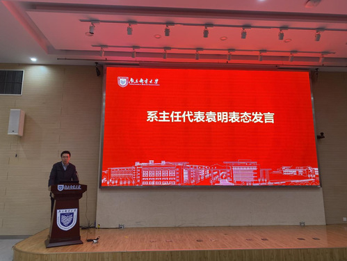 轮盘在线 教学副院长徐丰羽、系主任代表袁明作表态发言。徐院长表示,将组织全院老师进一步深入学习审核评估相关文件,理解其内涵和要求,以高度的责任心和实事求是的态度对待评估,严格纪律、分清主次、统筹兼顾、分工明确,高质量完成评建工作任务。袁明老师表示将全力配合学校和轮盘在线 的各项工作部署,认真审视目前教育教学中优势与不足,全面贯彻落实OBE教育理念,从培养目标、课程体系、实践教学条件、教育教学改革等方面做好人才培养。
