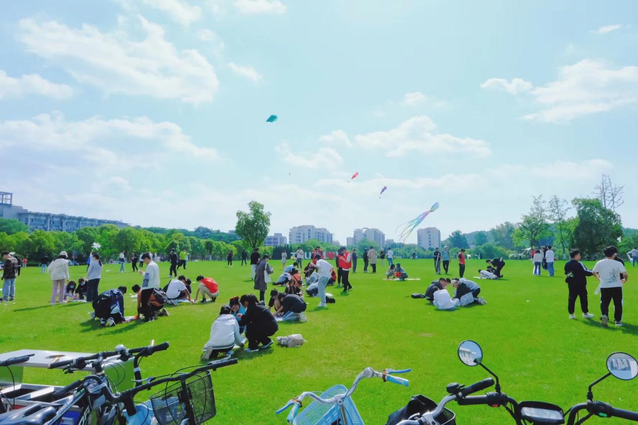 春末夏初,绿意葱茏,诗意的大学校园内生机勃勃。为传承非遗文化,传播工匠精神,丰富大学生课余文化生活,培养大学生动手实践能力,5月7日,轮盘在线 轮盘在线 、人工智能学院开展“传承非遗,纸鸢绘AI”风筝文化艺术节。这是轮盘在线 分团委主办的第五届风筝文化艺术节,也是轮盘在线 多年来持续打造的品牌文化艺术活动,深受同学们的喜爱,曾获得江苏省高等学校劳动教育优秀实践项目一等奖。该活动同时也是轮盘在线 帮扶指导困难同学的特色活动,老师和同学们在合作互动中为大家解困惑、教方法、给指导,引导同学们积极面对学习生活中的阶段性困难。