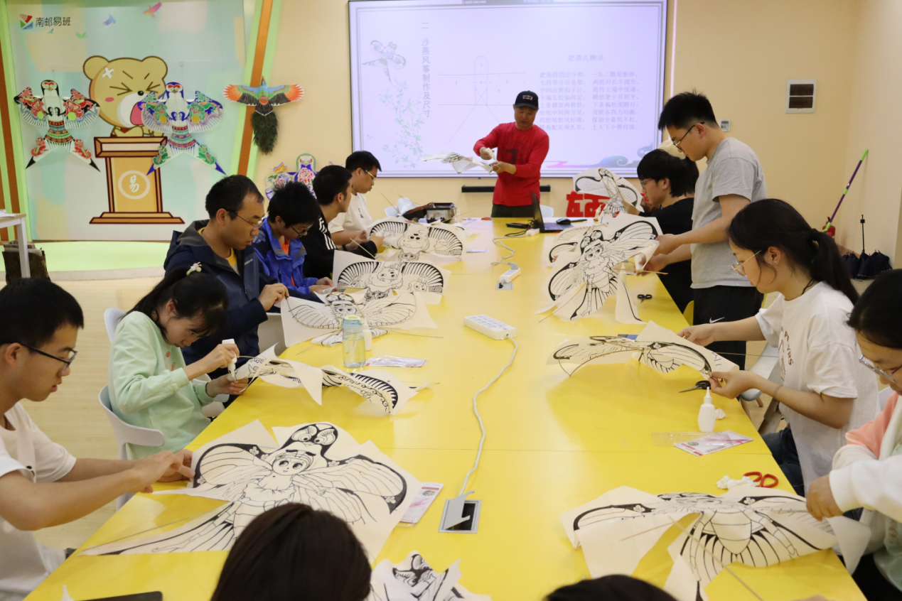 传统文化讲座开展的同时,另一边的制作体验手工坊也在易班会议室热火朝天地进行。小小“沙燕”,眉梢上挑,两眼有神,一副剪刀尾巴,煞是可爱。其个头虽小,其制作工序却十分考究:风筝的骨架需要经历选竹、劈竹、弯、削、接五个步骤,"扎"要对称,"糊"要平整,"放"要灵活。其中最难的步骤是骨架的固定,为此老师还特意编了口诀: