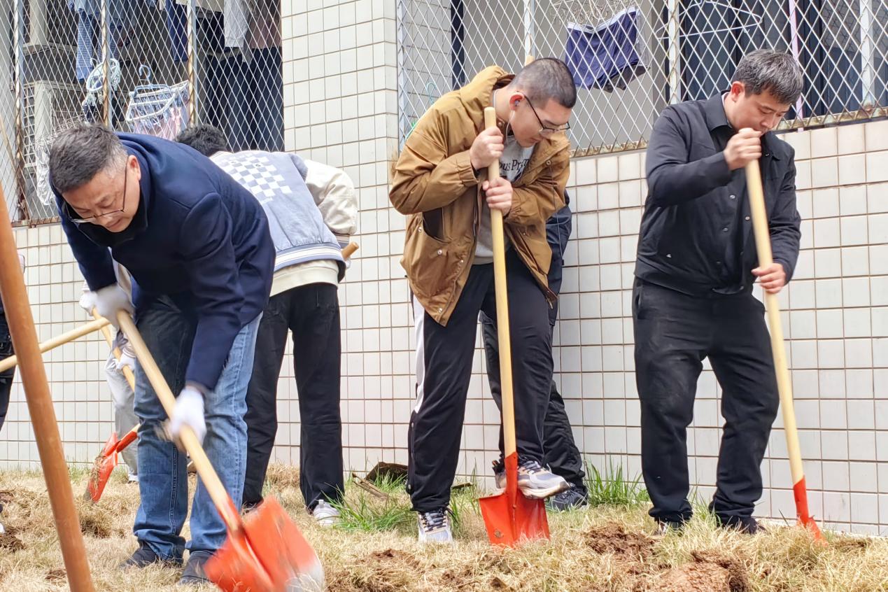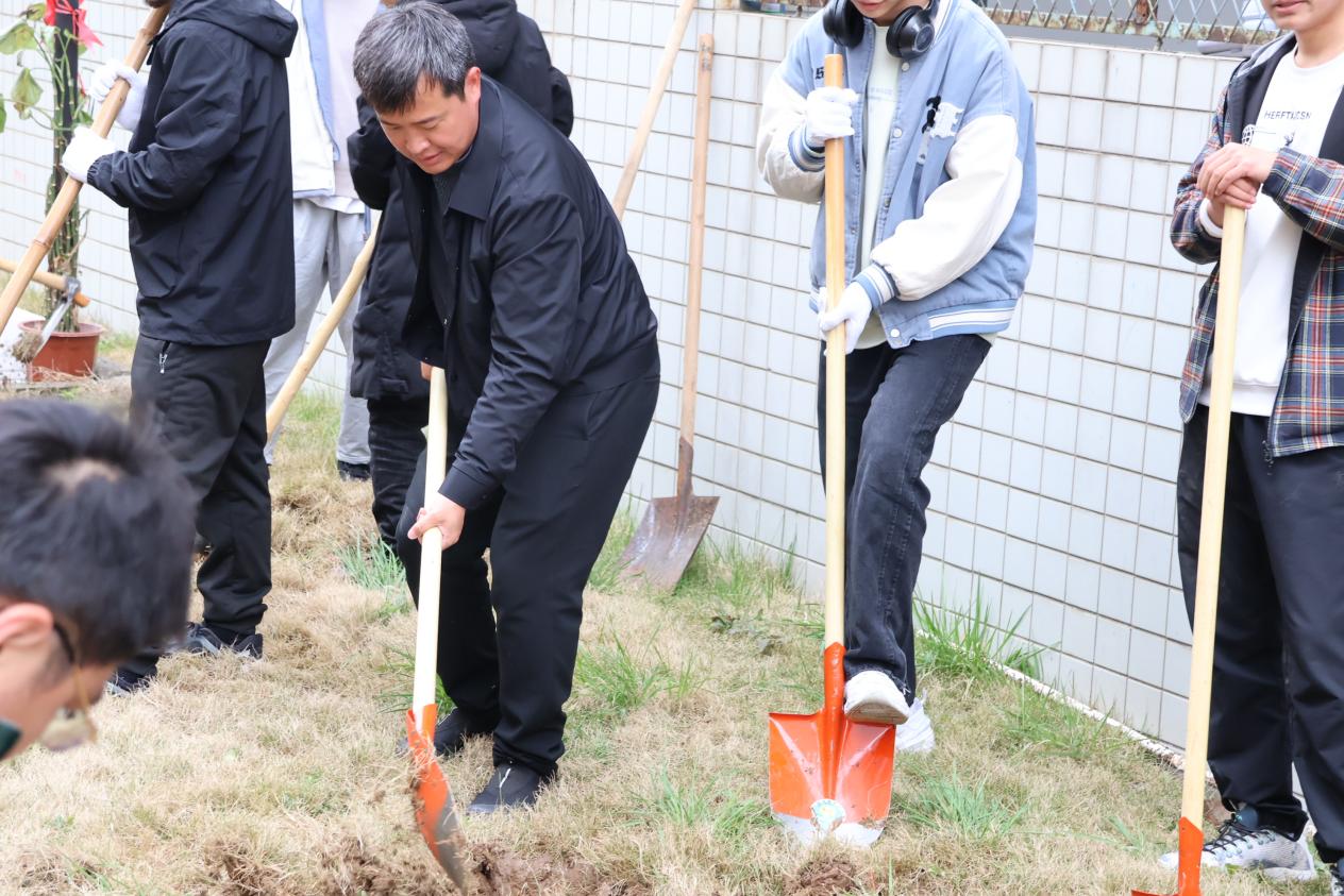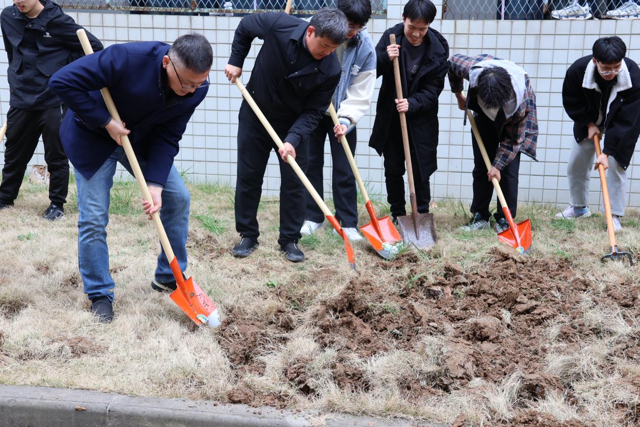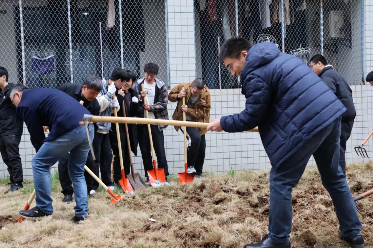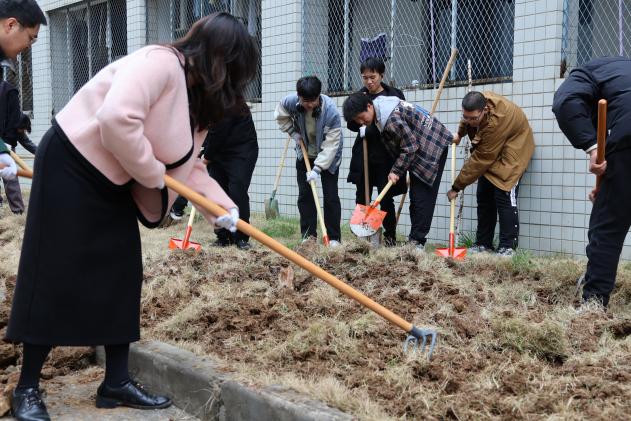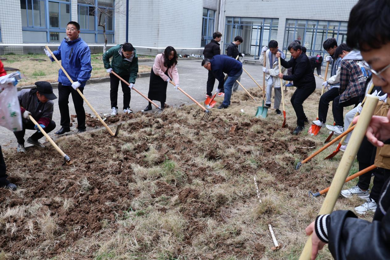 参加活动的师生精神饱满、干劲十足,大家分工合作、配合默契,有的挥锹铲土,有的填土踩实,认真细致地完成每一道工序,在大家齐心协力的配合协作下,地块上的杂草,土地变得平整,土质变得松软,静待日后的花果蔬菜被精心培育其中,为春天增添了一抹盎然生机。