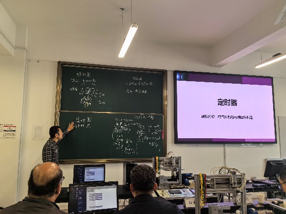 活动中,首先由吴亚勇老师、马凯威老师分别对电气控制与可编程控制器课程的《接触器》、《定时器》进行授课,两位老师从知识点定义、原理、应用等方面入手,结合工匠精神,系统的展示课程知识,并进行学生技能训练。随后,赵勃老师重新演绎了上述的两个授课片段。赵老师在教学过程中结合日常生活中的实际案例,采用了启发式教学、案例式教学等多种教学方法,化繁为简将晦涩难懂的工科知识生动有趣的娓娓道来,并恰如其分的融入人文积淀、审美情趣、理性思维等。