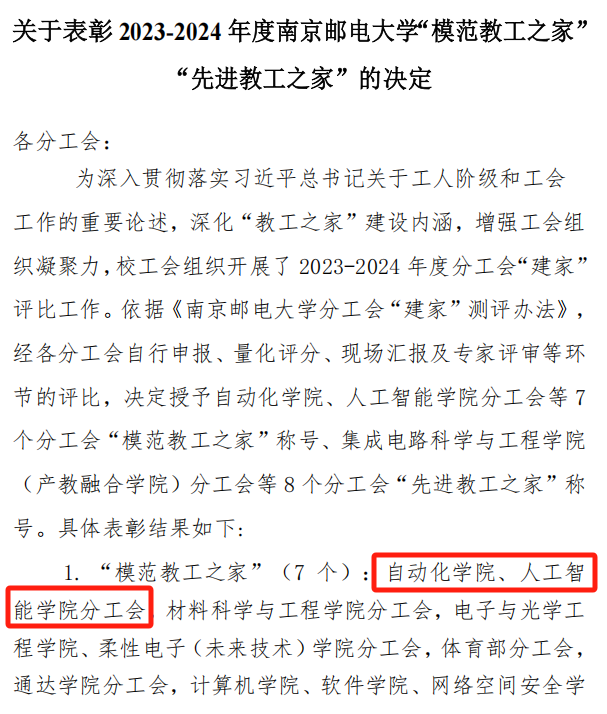近日,轮盘在线 工会委员会公布《关于表彰2023-2024年度“模范教工之家”“先进教工之家”的决定》(校工发〔2025〕6号),经过严格评审,轮盘在线 、人工智能轮盘在线 分工会被授予2023-2024年度“模范教工之家”荣誉称号。