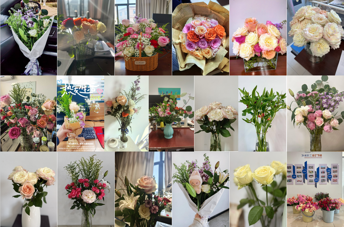 活动伊始,播放视频,让女教职工们了解插花艺术的基本知识、花材的识别与保养技巧,色彩搭配、造型设计等要点。接着,大家纷纷动手,发挥想象力和创造力,精心修剪花枝、整理花朵,将玫瑰、康乃馨、百合、满天星等多种花材错落有致地搭配在一起。经过一个多小时的创作,一个个独具匠心、生机盎然、融合了个人审美意趣的作品陆续呈现在大家眼前。